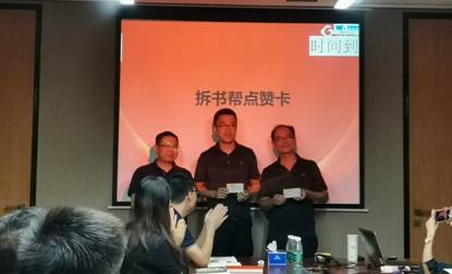 由所有参与者共同投票选取了本场拆书活动中最受欢迎“拆书家”,他们分别是销售二部陈伟聪、国际贸易部刁学千,华美板材副